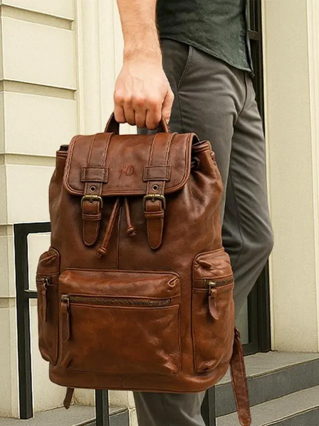 ^^ Everyday & Travel-Ready: Ideal for international travel, hiking, and camping, this leather rucksack offers versatile storage and a classic, rugged design. Use it as a daypack, outdoor bag, or a weekend leather backpack, designed for both men and women with functional compartments for all your needs.