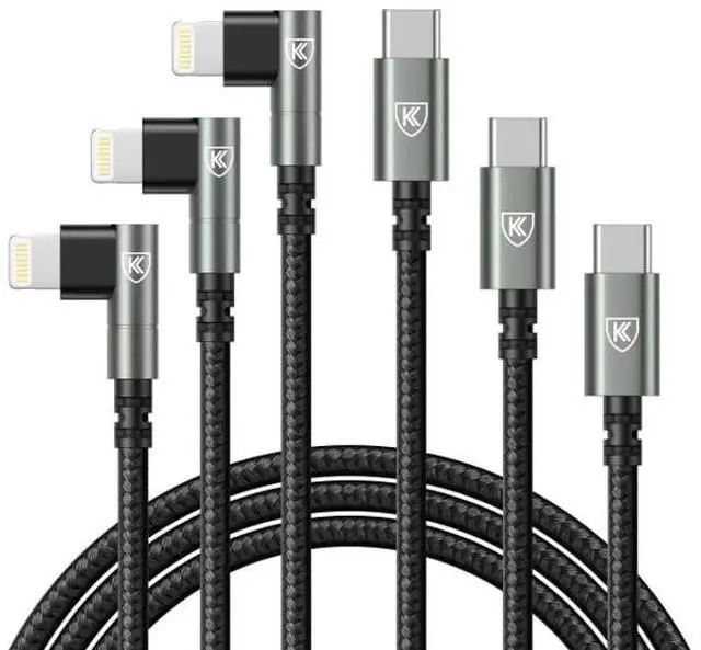 ^^ Durable and Flexible: iPhone USBC to Lightning charging cable designed with premium materials, comes with nylon braided surface, tangle-free. It has been tested with 10, 000 times bend and strong bearing capacity. 90 degree aluminium alloy connectors resist heat and corrosion, reduced the fraying and wearing of the cable joints, prolonging its life span.