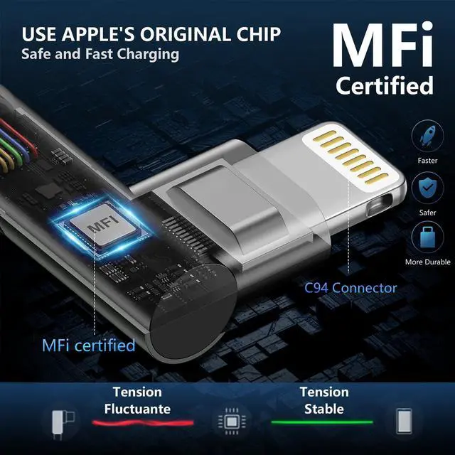 MFi Certified Lightning Cable: Each fast charging cable contains an authorization chip issued to ensure 100% compatibility with iPhone. The charger cords will not hurt your iPhone devices. ^^ USB C Lightning Cable Fast Charging and