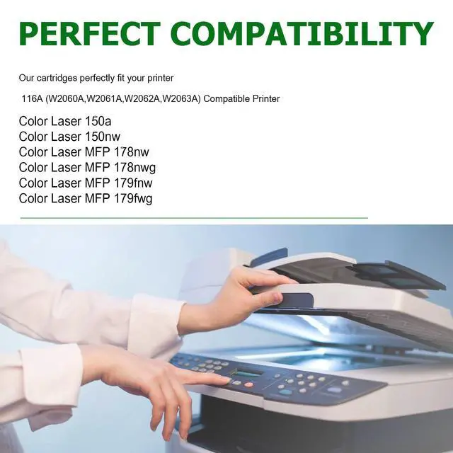^^ Compatible Printer: Color Laser 150A, Color Laser 150nw, Color Laser MFP 178nw, Color Laser MFP MFP 178nwg, Color Laser MFP 179fnw, Color Laser MFP 179fwg ^^ all 116A toner are made in an ISO 9001 and ISO 14001 certified facility ^^ 116A Toner Cartridge adapt latest upgraded chip that can be quickly recognized by the printer. to ensure compatibility and reliabilityfor exceptional performance provideslong-lasting printing experience