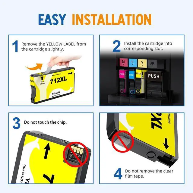 Package Contents: 4 pack ink 712xl combo pack including 1 x 712xl black ink cartridge, 1 x 712xl ink cartridges combo pack(1 x 712xl yellow, 1x 712xl cyan XL, 1 x 712xl magenta ink cartridges)