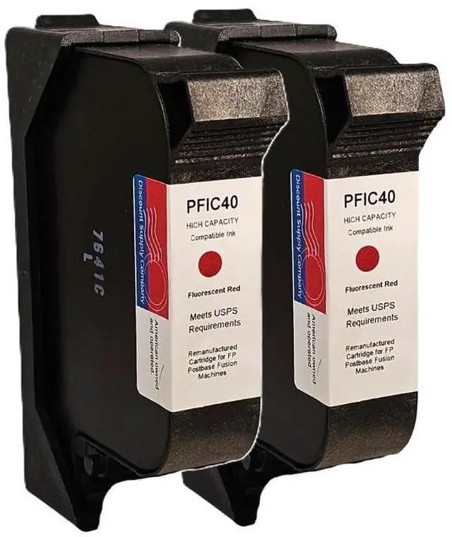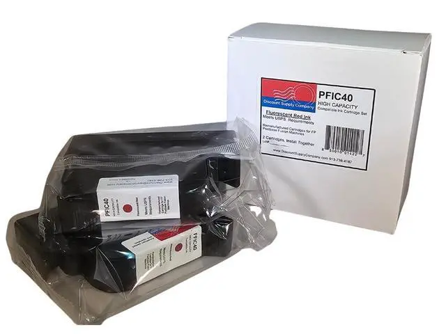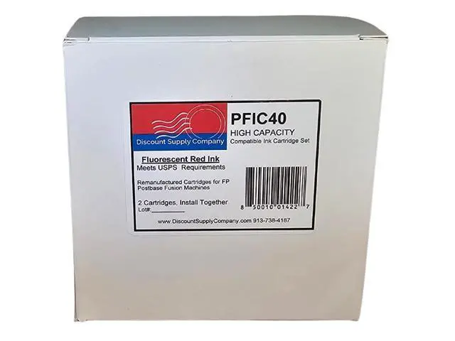 Our PFIC40 compatible ink cartridge set is for PostBase Fusion Mailing Systems. Compatible with OEM part #PFIC40 and for use in FP PostBase Fusion Semi-Auto, Auto, Advanced, A120 Series Mailing Machines. Provides up to 18, 000 impressions depending on actual usage. USPS certified fluorescent ink will not dry out prematurely and we offer a 90 day product warranty.