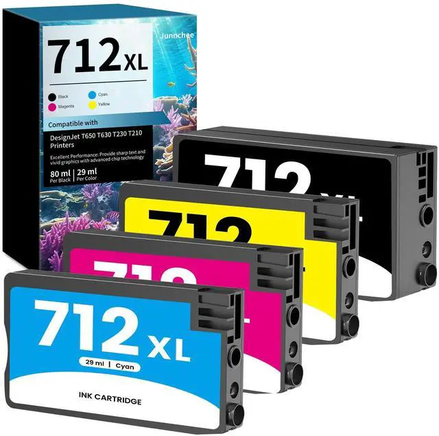Includes: 4-Pack, 712xl 712 Ink Cartridges High Yield (1 black 712 712xl ink cartridge, 1 cyan 712 712xl ink cartridge, 1 yellow 712 712xl ink cartridge, 1 magenta 712 712xl ink cartridge) ^^