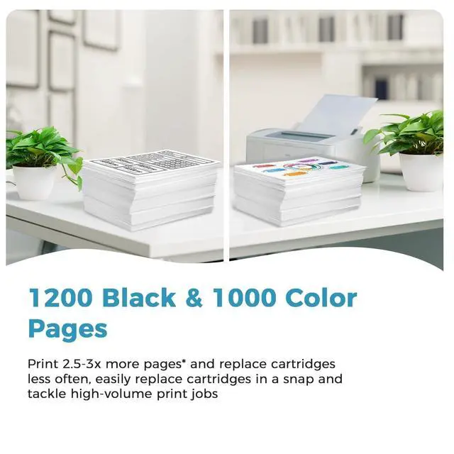 Higher page yields: Our latest-generation ink-absorbing materials enable greater cartridge capacity. The black cartridge can print up to 1, 200 pages, while each set of color cartridges (cyan, magenta, and yellow) can print up to 1, 000 pages (based on 5% coverage on A4 paper) ^^ Compatible PrintersOfficeJet 8010 8010e 8012e 8014e 8015 8015e 8018 8022 8022e printer ^^ Compatible PrintersOfficeJet Pro 8020 8020e 8024e 8025 8025e 8028 8028e 8035 8035e printer ^^