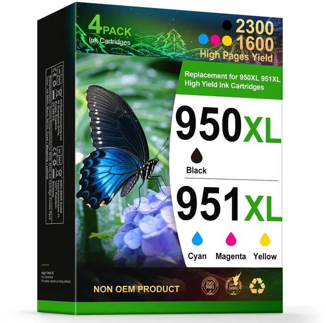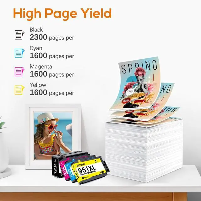 Page Yield: Includes 1 black 950XL (up to 2, 300 Letter pages) and 3 color 951XL cartridges (up to 1, 600 Letter pages each). Ideal for home offices and small businesses that need consistent quality and reliable page yield. ^^