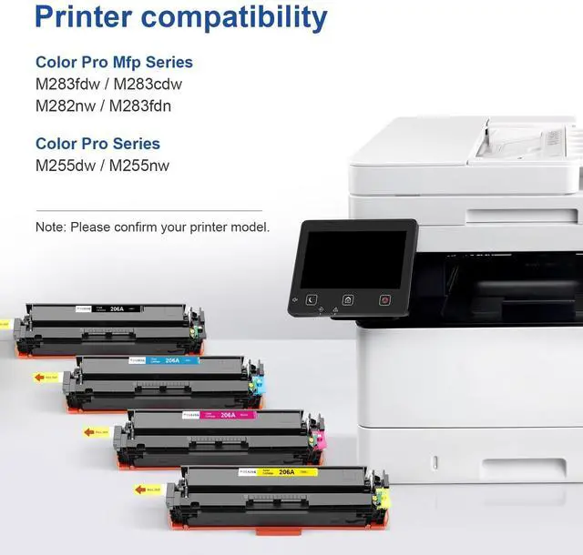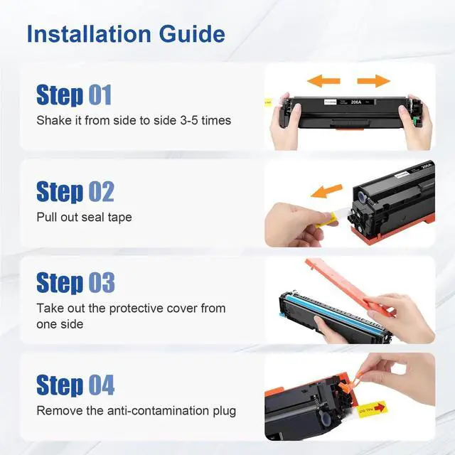 Quality Printing: Our 206A toner cartridges 4 pack and also Compatible for HP 206X toner cartridges 4 pack high yield with high efficiency toner to get the clear text and vivid color printing