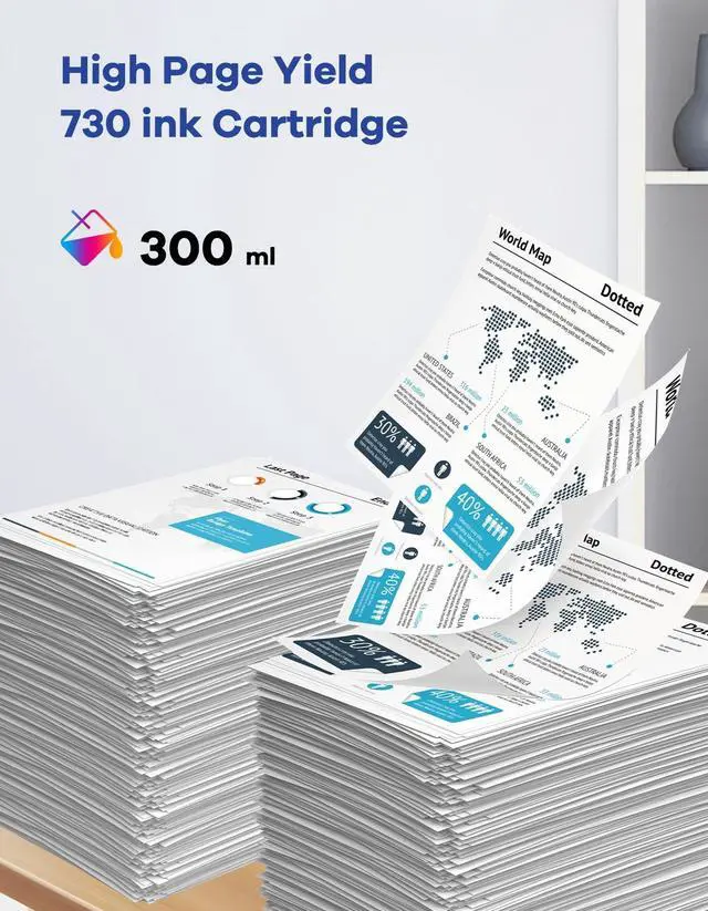 Use: Our 730 ink cartridges are designed for easy installation and use, so you can spend less time troubleshooting and more time printing. Simply pop them in, and you're ready to go ^^