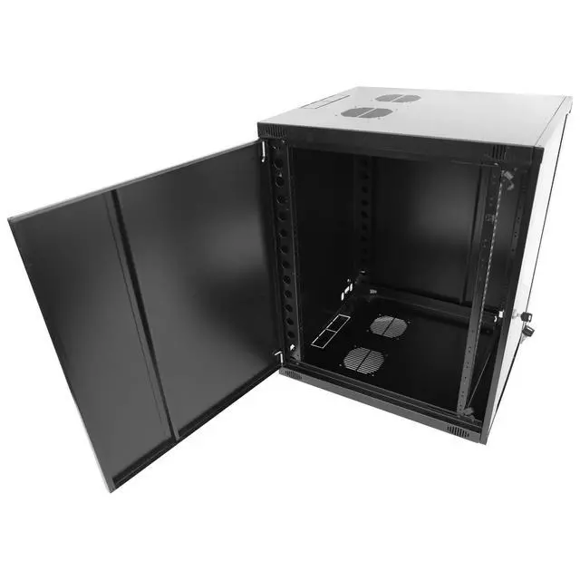 ^^ DESIGN AND VENTILATION: server rack cabinet removable door and side panels with vented top allowing airflowContains two fans, lockable tempered glass front door not only boosts security but also facilitates easy monitoring of installed equipment.