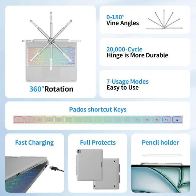 Case with Keyboard: With 360 hinges, this iPad Pro 13-inch keyboard offers seven versatile usage modes for writing, drawing, watching videos, or browsing. It's ideal for educational settings, critical tasks, or creative pursuits, providing flexibility and convenience wherever you go. ^^ Ipad Pro 13 Inch with