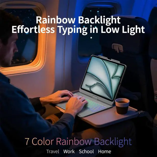 Accurate Touchpad: Featuring a multi-touch touchpad integrated into the 13-inch casing of the iPad Pro, this keyboard delivers precise responses that enhance your editing, browsing, and video playback experience. Transform your iPad Pro 13 and iPad Air 13 into laptop-like devices to boost work efficiency and unleash creativity. ^^ Ipad Air with 7-color