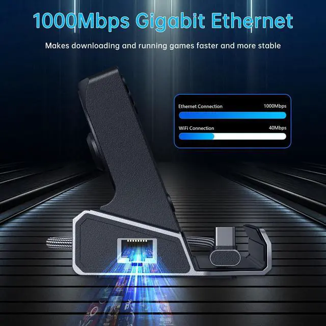 Handheld Console Dock: Transforms your Steam Deck OLED/ASUS ROG ALLY/Legion Go's USB Type-C into 11 ports: HDMI 2.0 (4K@60Hz), Gigabit Ethernet (1000Mbps), 3 USB 3.0 (5Gbps), 3 USB 2.0, 1 VGA1080P@60Hz, 1 DP4K@60Hz, USB Type C PD 3.0 (100W), 1 Key to change Screen, this handheld console dock combines hub, stand base, heat sink, 40Gbps Type C adapter, 4 Cpas, 1 HDMI cord in 1.5M, it is a professional handheld gaming dock station. ^^ 3 speed Adjustable Cooling Fans Designhis brand-new docking station can meet the needs of most gamers. You can adjust the fan speed to three different gears. Colorful LED atmosphere lights are built into both the fans and the bottom of the docking station, which can enhance your gaming experience. ^^ Stable Gigabit Ethernet & Fast