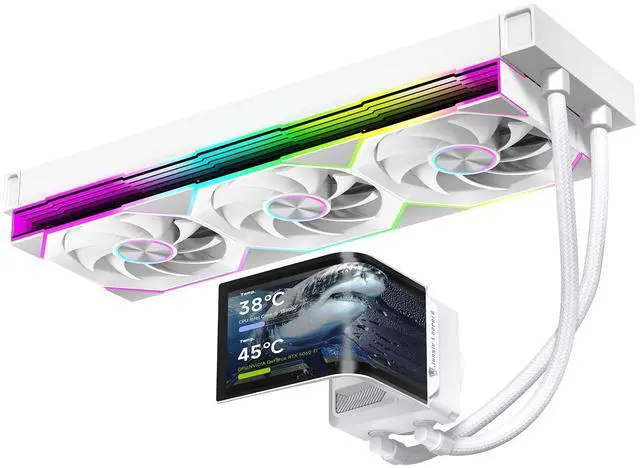 ^^ [Better Cooling]Aluminum integrated heat sink design improves cooling efficiency by 40%. It can handle up to 320W TDP, with fan speeds of 800 - 200010% RPM, three fans with a total airflow of 165CFM, and an air pressure of 2.05 mmH2O, guaranteeing excellent overclocking-level cooling ^^ [Radiator Parameters]Chill ARC 360 water-cooled radiator size of 379 * 120 * 27MM, waterway length of 400mm, pump speed of 2700 10%, fan size of 360*120*25mm, fan speed of 800-200010%, noise 30db (A) ^^ [ARGB Synchronized Lighting]Siamese ARGB Infinity Mirror fans synchronize seamlessly with the motherboard's 5V 3pin header.
