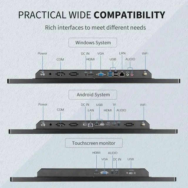 Now, our touch products have been exported to 50 countries and regions, very popular around the world. We also provide one-to-one customization services, such as product appearance, a variety of ports(HDMI, USB 3.0, VGA, DVI, PoE etc), plugs(American plug, British specification plug, European standard plug, Australian gauge plug etc), mounting method and product boot logo & screen and so on.