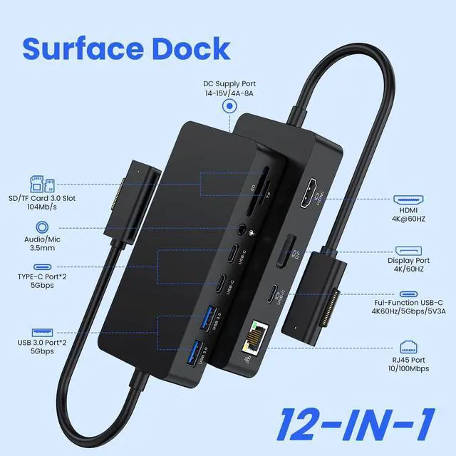 Surface Dock All-in-One Expansion: Designed for Surface series, expanding 12 ports via