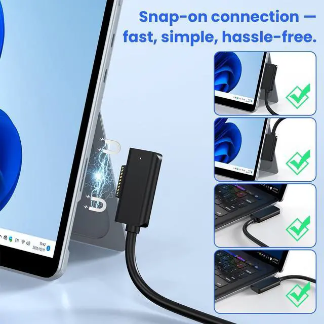 Wide Compatibility & Premium Build: Works with Surface Pro 11/10/9/8/X/7/6/5/4/3, Surface Laptop 7/6/5/4/3/2/1, Surface Laptop Go 3/2/1, Surface Go 4/3/2/1, Surface Book 3/2/1, and Surface Laptop Studio 1/2. Durable aluminum alloy housing with LED indicatorswhite for correct power input, green for normal connectionoffers a professional and reliable docking experience.
