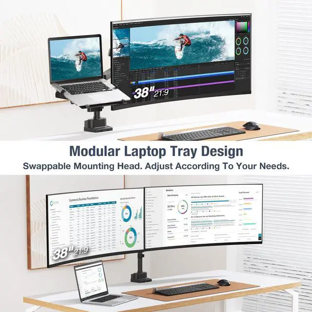 ^^ Stay Healthy & Focus - New top mounting design simplicity the assemble process. After setup, the monitor mounts instantly improve working posture, increase workspace, hide cables, and discover the most productive self. ^^ Cable Management - Keeps your workspace professional and organized with the cables and wires tucked away neatly in the arms.
