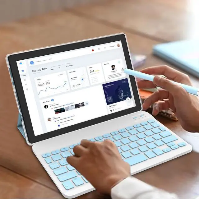 Notebook+Tablet 2 in 1 CUPEISI CP20 tablet comes with bluetooth keyboard, wireless mouse and foldable protective case, it can flexibly turn tablet into a laptop mode or computer mode. Enables you to work and learn efficiently and quickly handle daily tasks, offers you limitless features and capabilities. ^^ Android 15 Tablet The 10.1 inch tablet equipped with stable Android 15.0 system, built-in 1.8GH z Quad-core CPU, 12GB (4GB+8GB achieved through expansion technology) RAM and 64GB ROM, with microSD card slot which can expanded up to 1TB, more app(support Netflix, Disney+), songs, videos and pictures can be saved right on your tablet.