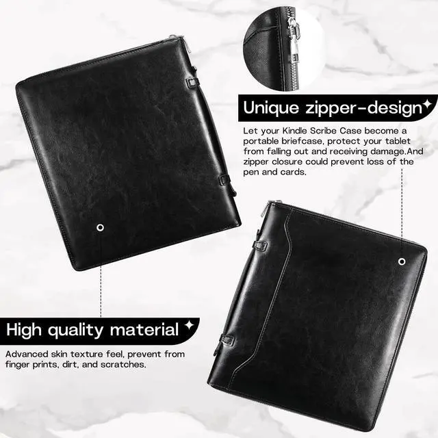 PERFECT COMPATIBILITYSpecifically designed for Kindle Scribe 10.2 inch 2022 & 2024 Released. Easy access to all functions and controls buttons. NOT fit any other Kindle. Please check the model number before purchase. ^^ UNIQUE ZIPPER DESIGNOur Kindle Scribe cover is very suitable for all business elite. With the zipper pocket, you don't need to worry about the tablet falling out. The zippered folio is handmade by experienced craftsmen. Elegant never goes out of style handmade charm. ^^ HANDHELD-BRIEFCASE DESIGNLet your Kindle Scribe case become a portable briefcase, protect your tablet from receiving damage, durable and extremely sturdy.