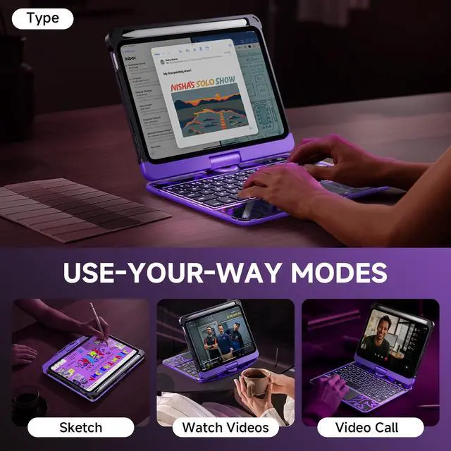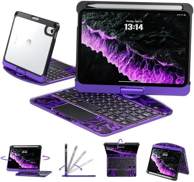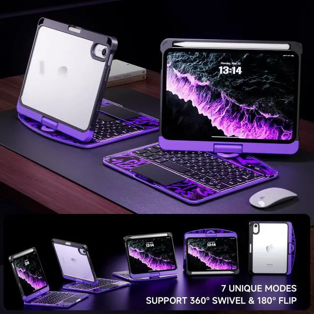 Flip: This case supports 360 rotation and an infinite viewing angle from 0 to 180, ensuring a comfortable perspective for typing, reading, and gaming, providing you with amazing versatility. It can be easily adjusted to any angle that suits you perfectly. You can take it to school, travel, work from home, write, or watch videos. ^^ Illuminated Typing + 7-Color