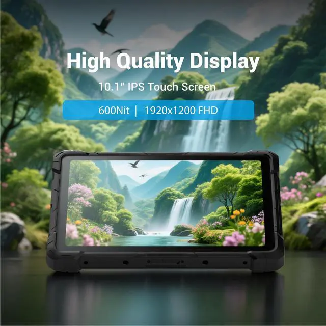 ^^ Powerful Performance Powered by an Intel J4105 quad - core processor with quad - threading architecture and turbo boost speeds up to 2.5GH z, this tablet delivers fast and efficient processing. With 8GB of high - speed RAM and 128GB of SSD storage, it enables smooth multitasking, allowing you to run multiple business applications, handle field work tasks, and operate outdoors without any lag. It also supports Linux/Ubuntu for developers, meeting diverse usage needs. ^^ Stunning Display & Connectivity The 10.1 - inch FHD touchscreen (19201200) is sunlight - readable with up to 600 nits brightness, providing clear visuals both indoors and outdoors.