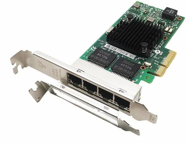 Interface Type: PCIe v 2.1 ( 5.0 GT / s) X4, also compatible with x8, x16 slot. ^^ Quad RJ45 ports, connected Cat5/ Cat6/ Cat7 Cable (up to 100 meters) to meet the demands of data center environments. ^^ Supports SR-IOV, VMDq, Energy Efficient Ethernet (EEE) and DMA Coalescing (DMAC). It also supports flexible I/O virtualization for port splitting and QoS. Scalable iSCSI performance provides cost-effective SAN connections.