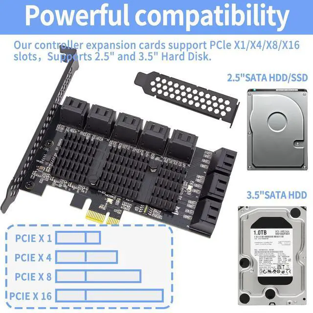 ^^ EXTENSIVE COMPATIBILITY Fully COMPATIBLE with X1/ 4X/ 8X/ 16X Slots on the mainboard and with compatible with both 2.5 SATA HDD/ SSD and 3.5 SATA HDD. Compatible with LINUX, Windows XP, and newer, MAC OS, and others. ^^