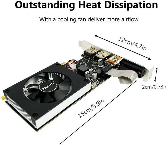 Designed for full-size chassis and small case installations. ^^ PCI Express based PC is required with one X8 lane graphics slot available on the motherboard. 300 Watt or greater power supply. This video card can automatically install new drivers and support Win11, DirectX 12. ^^ 30W low power, no external power supply and the all-solid-state capacitor keeps low power consumption and high performance. If you have any problems about this card, please contact us via messages.