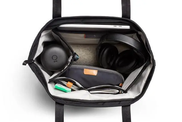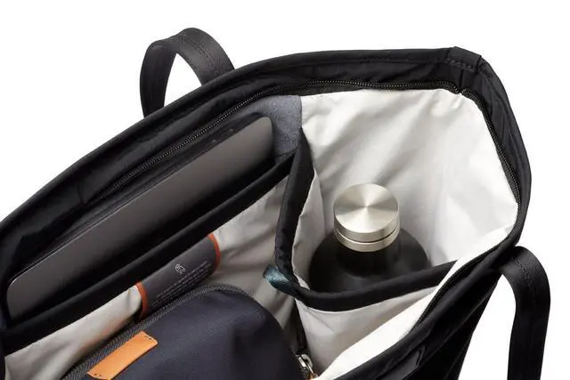 Spacious main compartment with padded storage for laptops up to 13. Two pop pockets hold bottles or an umbrella upright, then fold away when empty. Wide mouth opening for easy access, with a full zip closure that keeps contents secure. ^^ Front quick-access zip pocket with built-in key clip keeps essentials within easy reach ^^ Made from durable, water-resistant 100% recycled fabric, with eco-tanned leather accents. Soft-edge webbing straps with non-slip backing for comfortable carry. ^^ 15L main compartment with laptop storage for devices up to 13 ^^ Measures 14.2 inches x 18.5 inches x 5.1 inches / 360mm x 470mm x 130mm.
