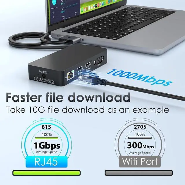 Triple Display Output: HDMI+HDMI+VGA (1080P). This MacBook Laptop Docking station support mirror mode and extend mode. ^^ Macbook Dock hub to 1000Mb/s Gigabit Ethernet Adapter & Audio PortThe macbook pro docking station dual monitor supports 10/100/1000 Mb/s Lan networks, which can download movies quicker, transfer files faster, and reduce latency, macbook air docking station ensure your network connection more stable. Also, this macbook pro dock have a 3.5 mm Audio port for you to put in your wired headset, so that you can enjoy music without disturbing others. ^^ Super Speed Data Transfer macbook pro Docking Station (2xUSB 3.0 +2xUSBC +SD/TF): This mac triple display docking station comes with 2 usb 3.0 ports and 2 usb c ports, the transfer speed of them are up to 5Gbps, allows you tranfer files in seconds from your usb flash driver, usb/usb c hard disks. In addition, The macbook laptop docking station with compact body also insert SD and TF slots. You can transfer photos to your macbook laptop with highest speed up to 104MB/s. ^^ Macbook Pro Dock Strong CompatibilityThis Macbook pro dock dongle hub multiport adapter designed for new usb c MacBook Pro Air 13 15 16 inch 2017 2018 2019 2020 2021 with 2 thunderbolt 3 on the one side. If your macbook only have 1 usb c thunderbolt 3 on the one side, then this mac pro adpater will not support for it. Only 15'' MacBook Pro (/2019/ 2018/ 2017), 16'' MacBook Pro (2019), MacBook Pro with M1/M2 Pro/Max chips (2021/2023) and Macbook 2020 Intel series support dual 4K@60Hz. ^^ M1/M2/M3 CHIP NOTEDue to inherent limitations in the 2020 M1/2022 M2/2023 M3 chip, MacBook models featuring these chips are not capable of supporting dual displays.