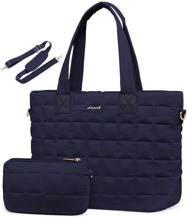 LOVEVOOK Laptop Tote Bag for Women, 17 Inch Large Puffer Work Computer Tote Bags for Teacher Nurse, Quilted Women's Purse Tote Shoulder Handbags with Zipper for Travel College Office Gym, Blue