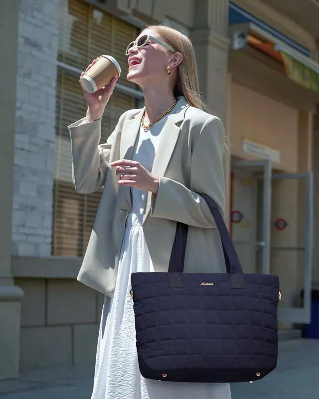 • Lightweight & Travel-Ready Tote Bag: At just 0.99 lbs, this laptop tote bag for women is over 50% lighter than traditional leather totes, perfect for easy commutes and travel. The adjustable shoulder strap ensures a comfortable fit for all body types. Featuring premium down-like padding and chic diamond-quilted vegan leather, the Lovevook tote bag offers a soft, stylish look that pairs perfectly for daily commutes and travel