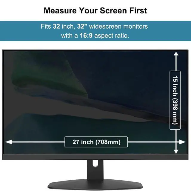 Privacy Filter Dimensions - Privacy Screen Fits 32 inch widescreen monitors with a 16:9 aspect ratio.