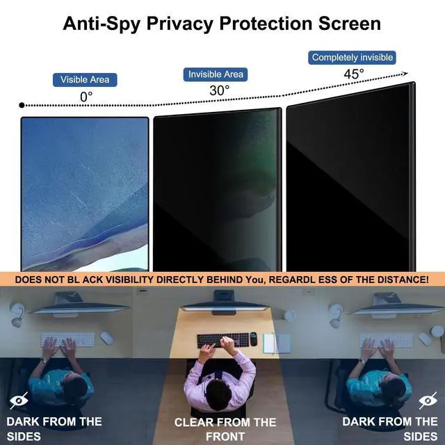 Diagonal: 32" (848mm). Compatible with HP Dell Acer Samsung LG ViewSonic and More. The length and width may not be a perfect fit, so the filter may be a little longer and wider. ^^ Easy to Install- Simple, quick and convenient Micro-suction technology secures to the monitor bezel without hassle or adhesives or slide-mount tabs, so you can easily take the privacy filter on and off your monitor. ^^ Superior Privacy - the content directly in front of the screen (within +-30 angle) is visible. Premium Computer privacy screen filter keeping your important information confidential and protects sensitive information, making it ideal for use in high-traffic areas. It uses revolutionary micro-louver technology. Anti-Scratch Technology. ^^ Eyes ProtectionUpgraded High-quality filter layer that can reduce 95% of blue light and 92% of UV light. Anti-scratch layer to avoid scratches from daily use. Protect your screen while protecting your eyesight. ^^ Quality ServiceYou can use it in any place where you need to protect the privacy of your screen, including offices, coffee shops, airports, airplanes, trains... Available anytime, anywhere.