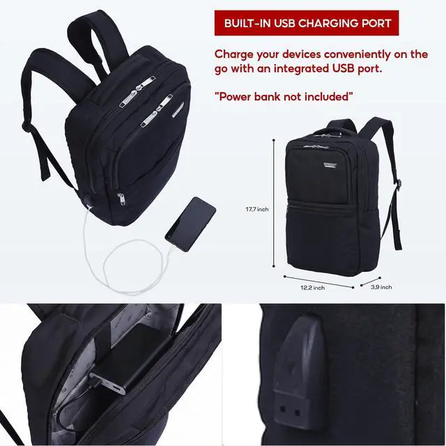Daily Commuting & Travel: Designed for modern professionals, this 15.6 inch laptop backpack features a built-in USB charging port that allows you to conveniently connect a power bank (not included) and charge your phone, tablet, or devices on the go. Ideal for work backpack, business travel backpack, and daily commuting. ^^ Shockproof 15.6 Inch Laptop Backpack with