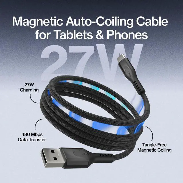 Experience effortless charging and organization with the Statik MagStack USB A to iPhone Cable. This 6-foot, 12W cable features a unique magnetic design that keeps it tangle-free and allows for easy folding and storage. Compatible with iPhone 14 to 6 models, it supports fast charging and data transfer, ensuring your devices are always ready to go. The magnetic material throughout the cable sticks to any metal surface, making it perfect for travel or home use. Enjoy a clutter-free charging experience with the Statik MagStack USB A to iPhone Cable.