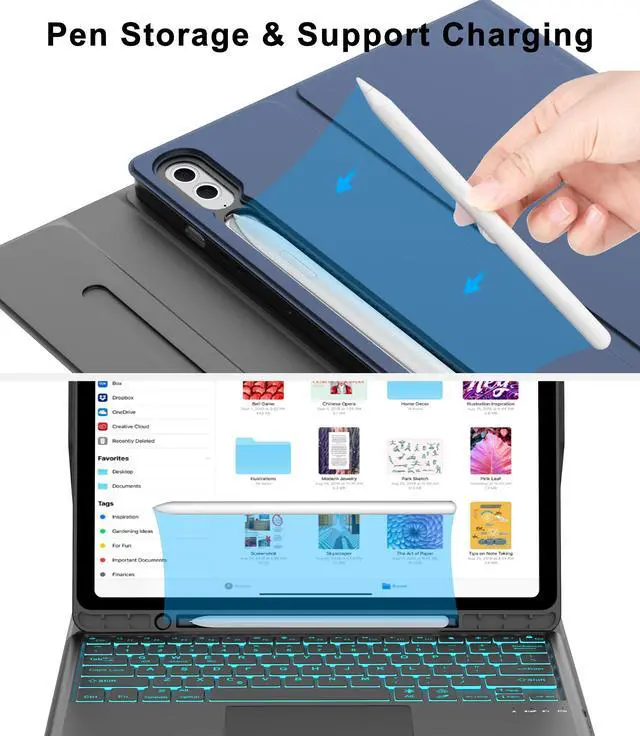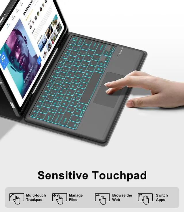 • Precision Touchpad Keyboard for Samsung 12.4inch TabTransform your tablet into a powerful productivity tool with our smart galaxy s10 plus touchpad case. The new ergonomic trackpad for samsung tab s9 plus case keyboard supports clicks, pinching, sliding, and rolling. Just fingertips to accurately control the tablet, edit documents at an unparalleled speed, browse the network, and create presentation.
