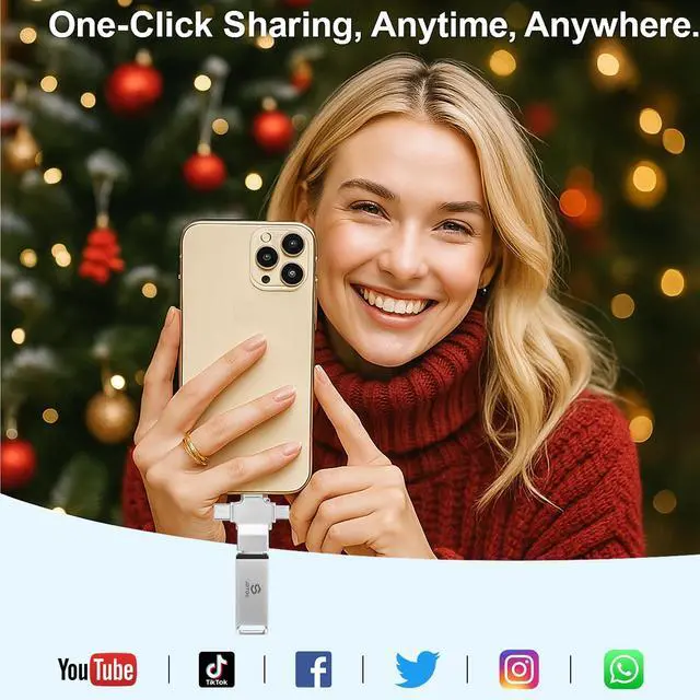 Our backup thumb drive equipped with Lightning, USB-C, Micro-USB, and USB 3.0 connectors, this photo stick ensures seamless data transfer between iPhone, iPad, Android, Mac, and PC. Easily move, back up, and organize your photos and videos across devices with zero compatibility issues. Share your favorite moments directly to social mediaquick, secure, and effortless. ^^ Secure Offline Storage & Real Storage CapacityThe Photo Storage Stick protect your data from hacks, cloud leaks, or lost accounts. Keep your memories safe in your own hands no subscriptions, no privacy risks.