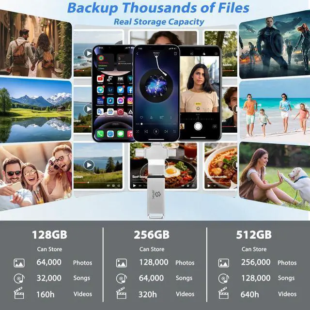 Enjoy true, full-capacity storage No Fake Size Real 256GB capacity with no hidden formatting loss. Unlike fake-capacity flash drives, the Memory Stick delivers reliable, real storage space with high performance for back up thousands of photos and videosin minutes. ^^ Smart Organization - Auto Finds, Sorts & DetectsThis photo stick backup usb flas drive with built-in smart software automatically detects duplicates and sorts files by type and date. Your photo collection stays clean, organized, and easy to access no clutter, no confusion. It works as your personal automatic photo organizer and secure