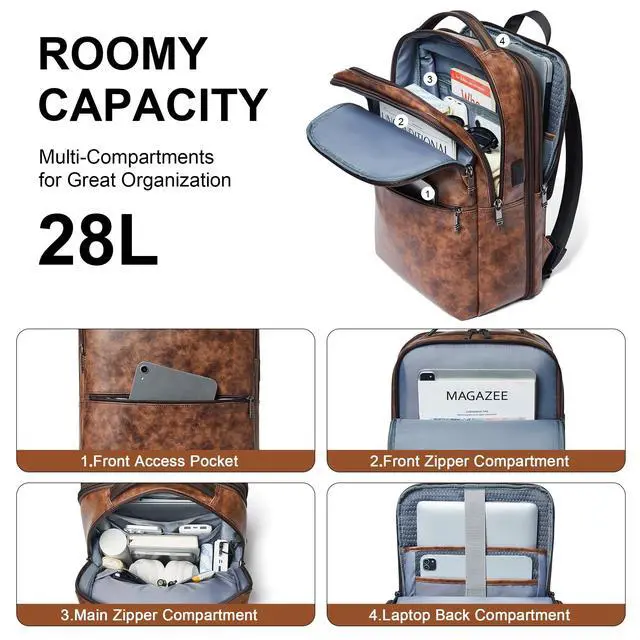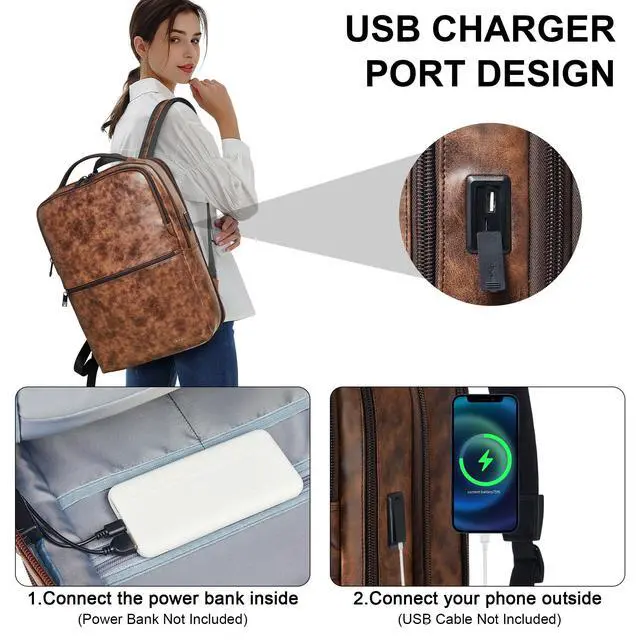 HIGH QUALITY LEATHER BACKPACK: The commuter backpack is made from PU leather, which is light and durable, so the backpack laptop can deal with a variety of scenarios, such as sunny days, light rain and snow. Airflow back design with soft breathable padding material, gives you maximum back support, and the ergonomic shoulder straps can effectively reduce strain on the shoulders. Good choice for a business laptop backpack, backpack for travel, backpack for laptop, or college backpack for men and women ^^