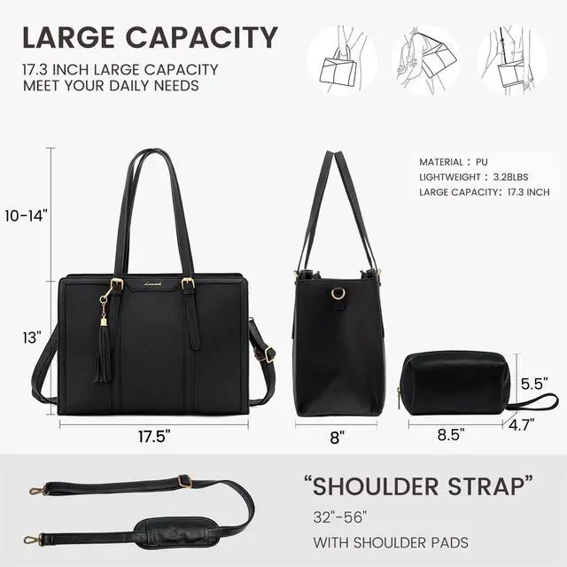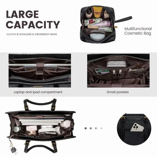 Size 17.5" x 8" x 13" (L*W*H) clutch bag 8.5" x 4.7" x 5.5" (L*W*H). ^^ High Quality PU & DurableCrafted from high-quality PUfaux leather, this computer bag is built to withstand the test of time. Its sturdy construction and reinforced stitching ensure long-lasting durability, protecting your valuable laptop and belongings. ^^ Versatile for Any OccasionWhether you're heading to the office, or traveling, this briefcase is designed to adapt to various occasions. It can also transform into a purse, shoulder bag, or crossbody bag. An excellent choice as a gift for your mother, wife, or friends, showcasing your taste and thoughtfulness.