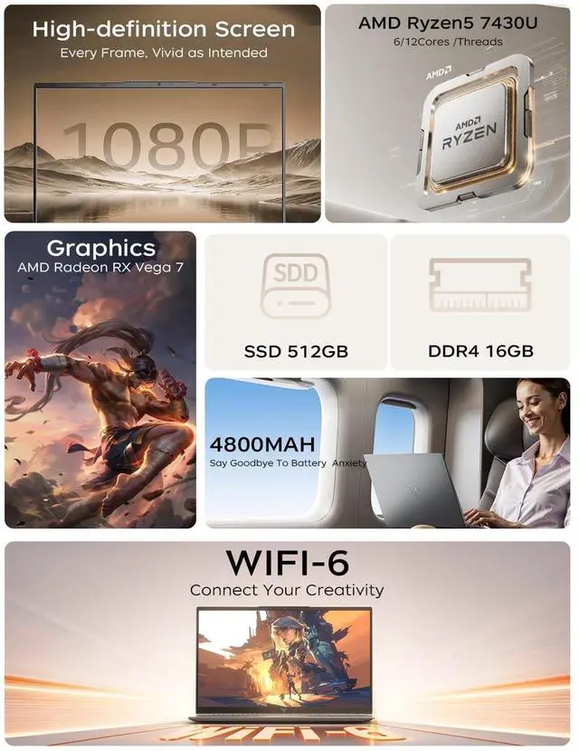 MULTIPLE PORTS AND STABLE CONNECTIVITY: Equipped with 3 USB 3.2 ports for high-speed office data transfer, a full-function Type-C port supporting video output, and an HDMI 1.4 interface for connecting to large displays to expand your workspace. WiFi 5 and Bluetooth 5 ensure stable wireless connections, enabling efficient productivity with wireless keyboard and mouse.
