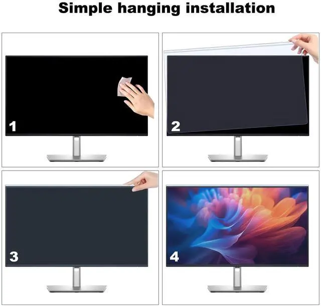 ^^ Effortless Installation: Experience seamless installation with our hanging-style design that eliminates the need for adhesives. Simply attach and remove it anytime, without any worry of sticky residue left behind on your monitor.