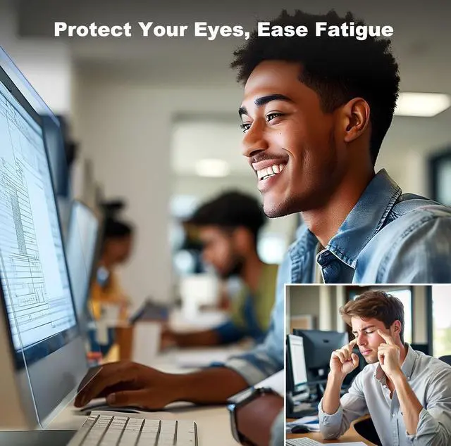 ^^ Eye-Care Solution: Safeguard your vision and alleviate eye fatigue with our advanced blue light blocking technology. Perfect for those who spend countless hours in front of their screens, it also protects against dust, fingerprints, and scratches, ensuring a more comfortable viewing experience.