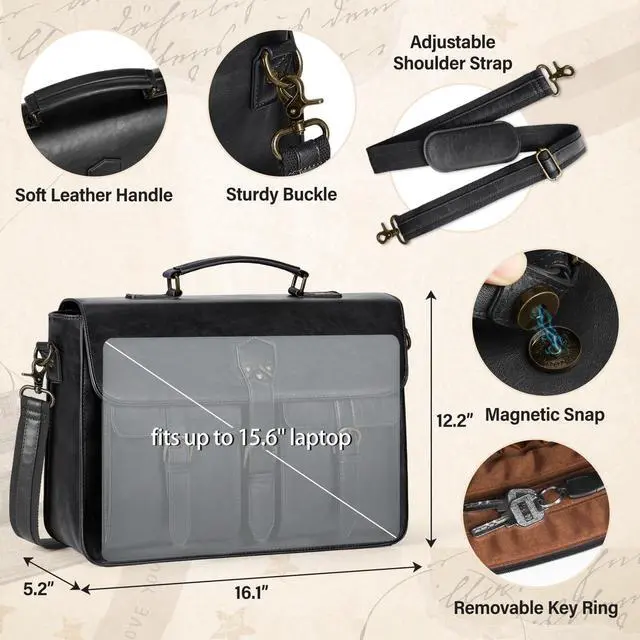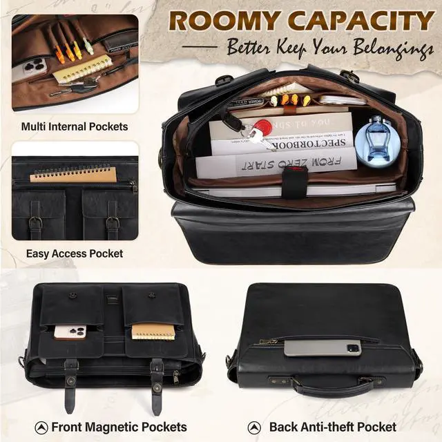 Vintage & Exquisite Messenger Bag: This professional leather bag is made of waterproof PU leather with cowhide pattern and premium nylon lining, trimmed with contrasting antique bronze hardware, which exudes a luxury fashionable feel. Reinforced stitching, strong magnetic buckle, anti-friction rivets, sturdy zippers, all carefully crafted details ensure this mens messenger bag for long-term use ^^