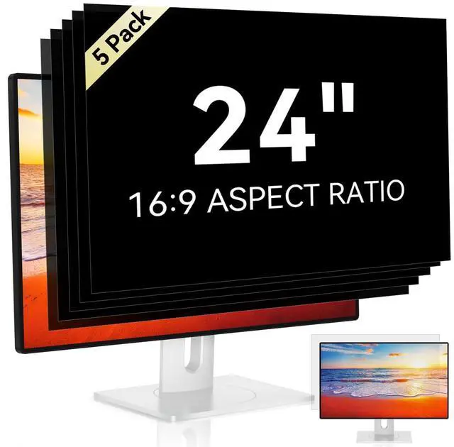 PRIVACY FILTER DIMENSIONS Width: 20 15/16" ( 20.9 inches/532 mm), Height: 11 13/16" ( 11.8 inches/299 mm) - 16:9 Aspect Ratio. Mamol computer privacy filters are designed to be perfectly compatible with HP, Samsung, Dell, Lenovo, Acer, Asus, LG, ViewSonic and other brands of monitors. Please check the width and height dimensions of your computer screen before ordering. If you have any questions about the dimensions, please contact us. ^^ ENHANCED PRIVACY PROTECTIONMamol 24 inch computer privacy filter keeps your electronic information confidential, making it excellent for use in high traffic areas. the computer privacy screen 24 inch is designed with advanced microlouver technology to block visibility at around 30 degrees and black out screens completely near 60 degrees. ^^ EYES PROTECTION This blackout privacy screen greatly reduces eye strain and minimizes potential hazards to vision. It filters 99.9 % of UV rays and suppresses 98% of blue light. As a reversible 24-inch privacy screen filter: The glossy side of the protector provides extra clarity and greater privacy, and the matte side minimizes glare and distracting reflections. Satisfy your different daily uses as needed. ^^ BETTER HD CLARTIYMamol 24 inch computer privacy screen Shield adds an extra layer of AR Ultra HD light transmission compared to others. It maintains the high definition of the screen without sacrificing too much screen brightness. It won't reduce the brightness and cause eye fatigue because of the privacy screen installed on the screen. ^^ ANTI SCRATCH & WASHABLE Our privacy anti-glare Monitor film has a surface enhancement layer to protect the privacy filter from scratches and fingerprints. It is washable and reusable. Even after prolonged use, you will get a brand new privacy screen for your desktop computer monitor after cleaning. Very Durable! ^^ TWO INSTALLATION OPTIONS 1) Apply clear adhesive stickers directly on the monitor privacy screen filter to hold it in place on the monitor screen itself; 2) Install these plastic slide mount tabs on the outer rim of the screen to hold the privacy screen in place (for computer screens with a raised bezel only), allowing you to slide the filter on and off the screen as needed.