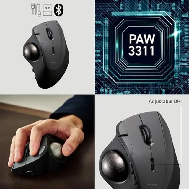 ^^ 36MM THUMB TRACKBALL: Large-diameter ball for accurate cursor control with minimal hand movement.