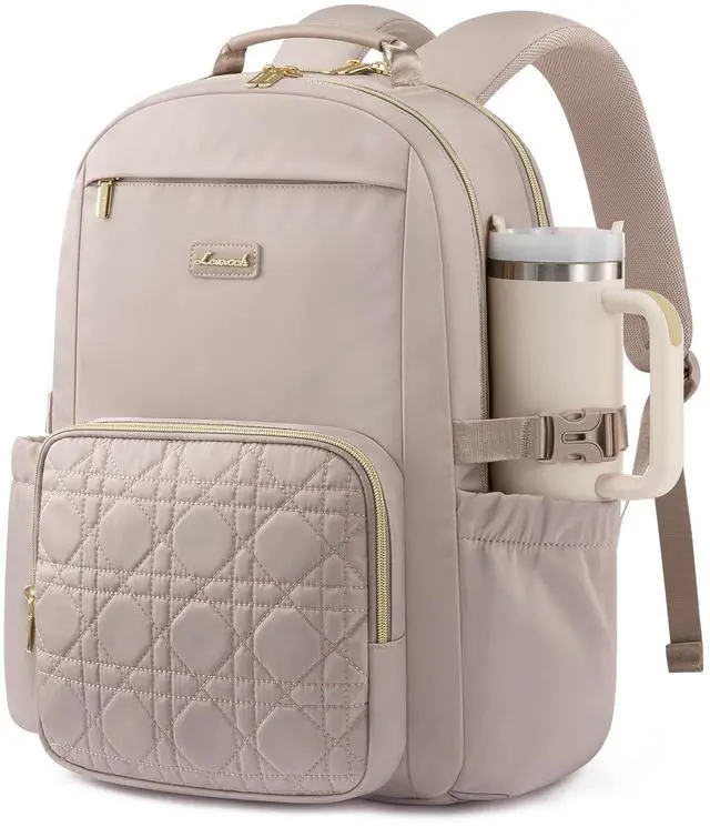 LOVEVOOK Laptop Backpack for Women with Pouch Pocket for Large Capacity Cup,17 Inch Teacher Nurse College Work Backpack Purse,Waterproof Laptop Bag Computer Back Pack for Travel, Nude+Wicker pattern