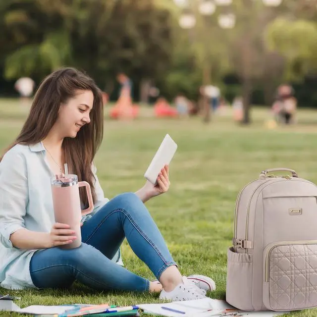 Bags College Backpack: The dedicated separate laptop compartment with cushioned cotton sewn around, has a dedicated separate 17.3 -inch laptop pocket, a 9.7 -inch iPad slot, fits your laptop perfectly and is padded for extra protection. It makes carrying your laptop so much easier. Professional and well made for work, business, travel, commuting, college, teacher, nurse, daily use as a practical gift for women. ^^