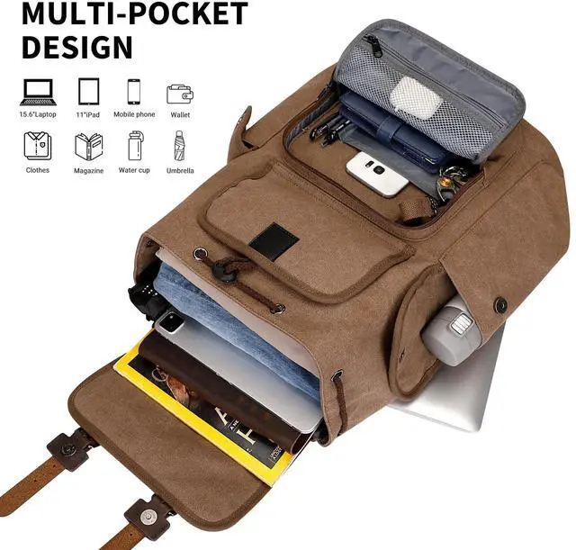 Material and Dimensions: This travel backpack is made of high-quality sustainable canvas and PU leather, with fashionable and fun tight stitching added to make it more sturdy. Length 31.7 x Width 20.3 x Height 44.4 centimeters (Length 12.5 x Width 8 x Height 17.5 inches).