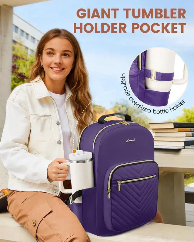 LOVEVOOK Laptop Backpack for Women with Giant Tumbler Holder 17.3 inch,Designer Travel Backpack Laptop Bag College Backpack,Quilted Work Nurse Teacher Backpack Purse Computer Bag Daypack,Royal Purple